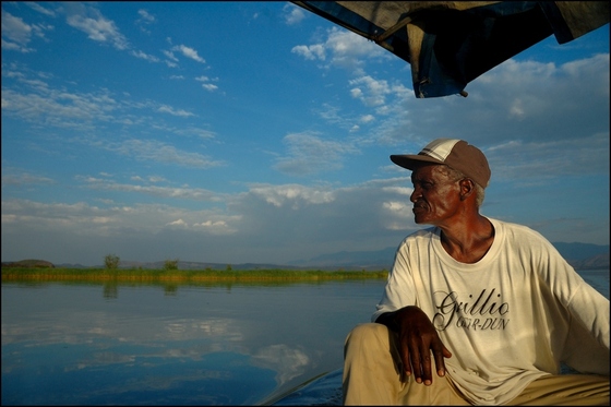 Rybak na jeziorze Chamo